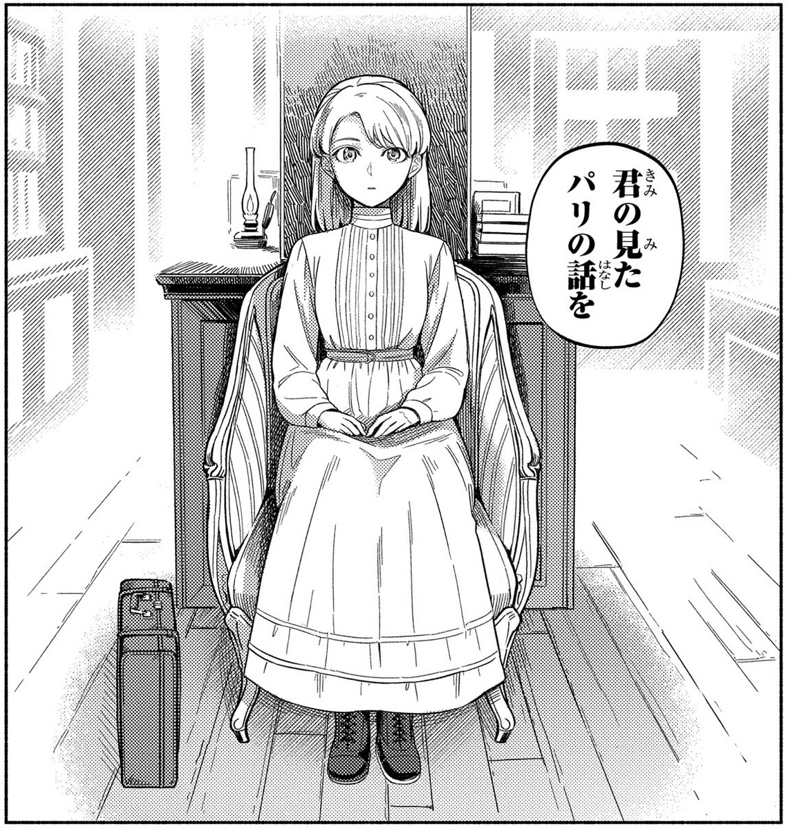 担当:まだ1巻しか出ていないので第1巻ですね(笑)。日之下さんの方に幾つか構想があったのでラフを拝見させて頂いて。作品の内容を伝えるには、どれが一番良いのか、より書店で際立つのはどういうものか、というところで議論をさせて頂き、古書的な手触りをもった想定とジャポニズムが流行ったパリの時代感を現したイラストとなりました。野心的なパッケージにはなりましたが、イラストとも相まって非常に上品な出来になり、とても良い作品になったなと考えています。(記事初出2022年12月※現在は2巻まで刊行)