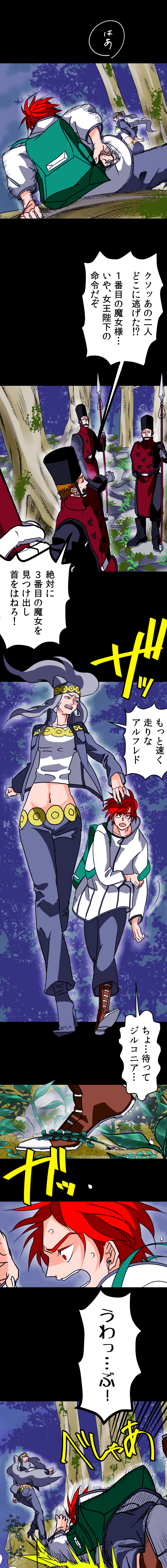 むかしむかし、つるぎの王国と呼ばれたところに三人の魔女がいました。一番目の魔女はその美貌から王様に見初められ、お后様になりました。二番目の魔女はその聡明さを人の為に活かし、三番目の魔女は美も智も二人の魔女には及びませんでしたが、優秀な弟子をとりました。一番目の魔女の命により、師匠である三番目の魔女を殺された弟子のアルフレドは復讐を誓う。