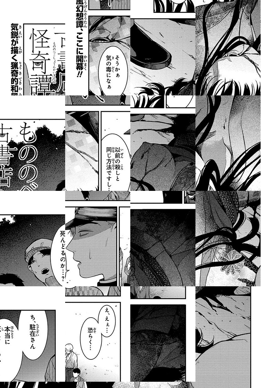 寡黙な青年・正太郎が店主を務める、物部古書店。健気な少年・シロに古書店の手伝いをさせながら、本を読みふける日々を送る正太郎だったが、彼には忌まわしき古書を回収する裏の仕事が…?俊英が描く猟奇的和風幻想譚!