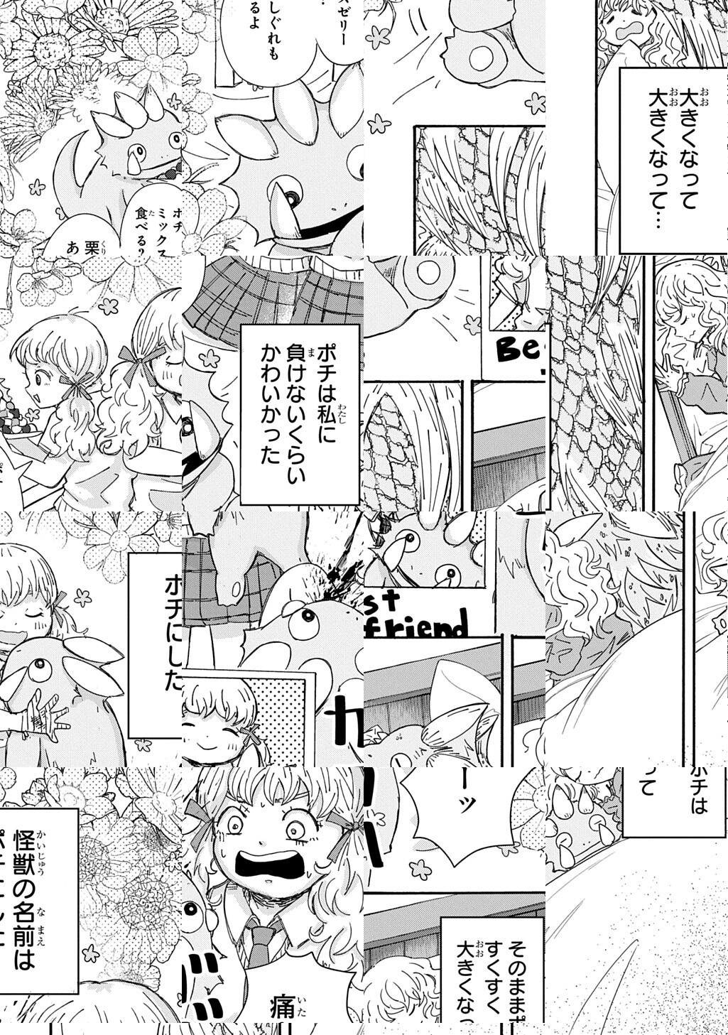 10Pの短編マンガがパッと楽しめるコーナー、作家の個性とアイディアが迸るショートショート部門!段ボールに捨てられていたもの、それは犬でも猫でもなくまさかの怪獣!! 可愛さに負けず劣らずどんどんデカくなり、そしてついにはビルを超すほどの大きさになってしまい…!?