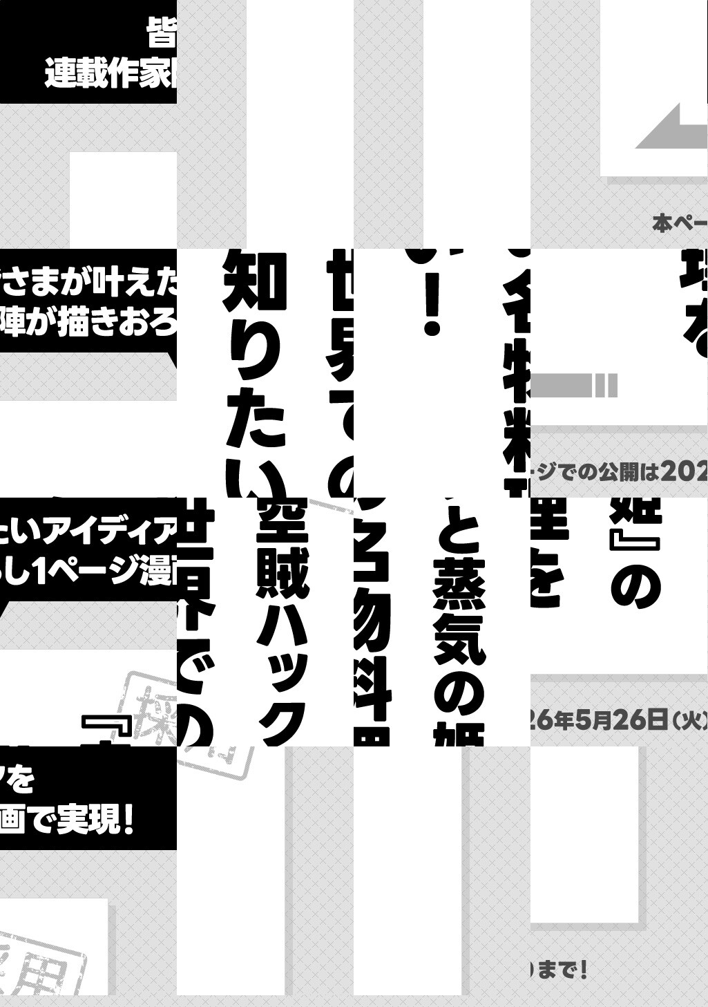 【毎月第4金曜日更新】ミスト産業革命により"空の時代"が幕を明ける。人々が地上から空に生活の場を移すなか、徒党を組み空を荒らし回る"空賊"たちが現れる。そんななか、群れを嫌い自由気ままに空を駆ける空賊もいた、その名は空賊・ハック。お宝とロマンを求めるハック一味の冒険が今、始まる。『COPPELION』の井上智徳がおくるネオ・ジュブナイルファンタジー、開幕!!