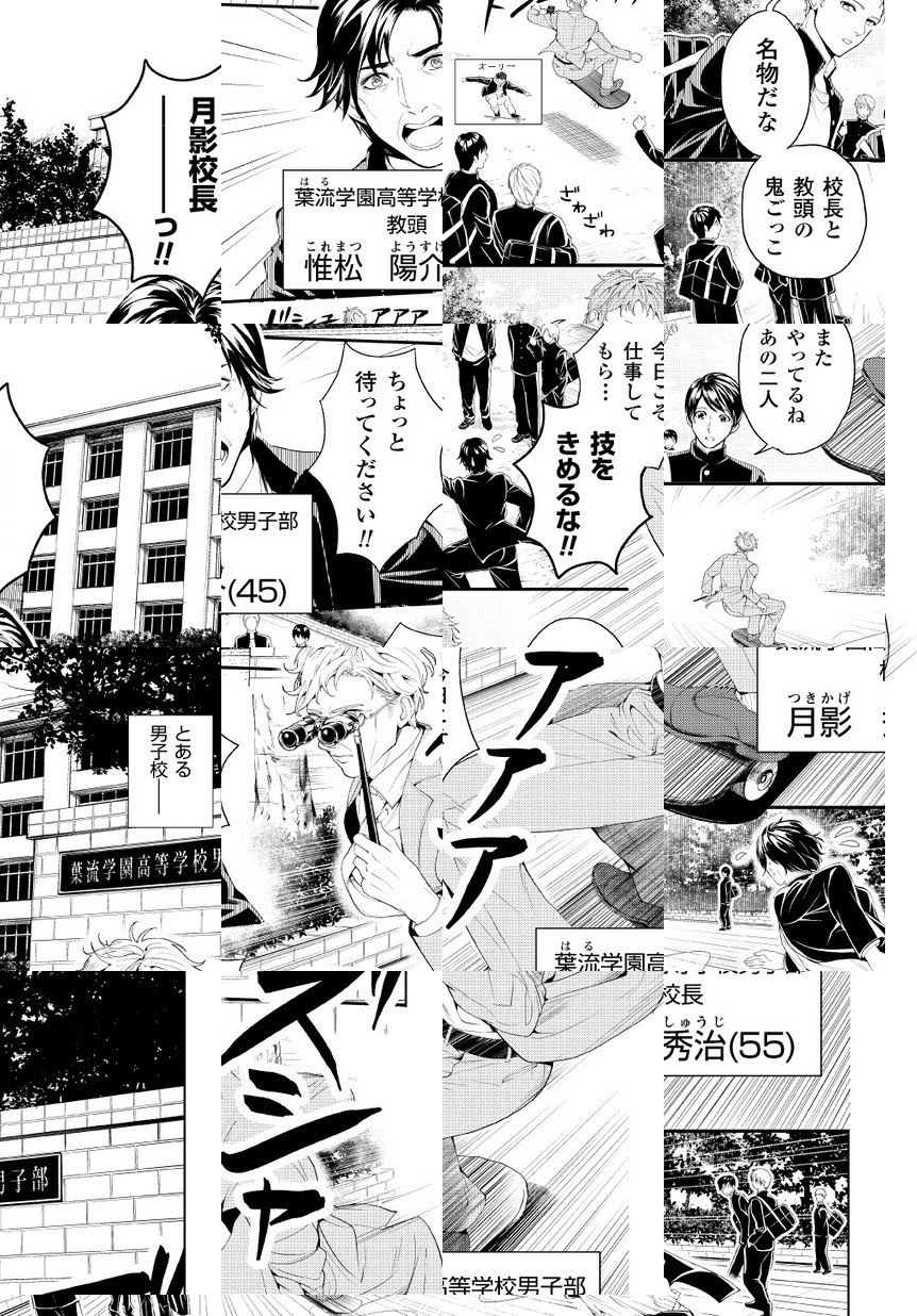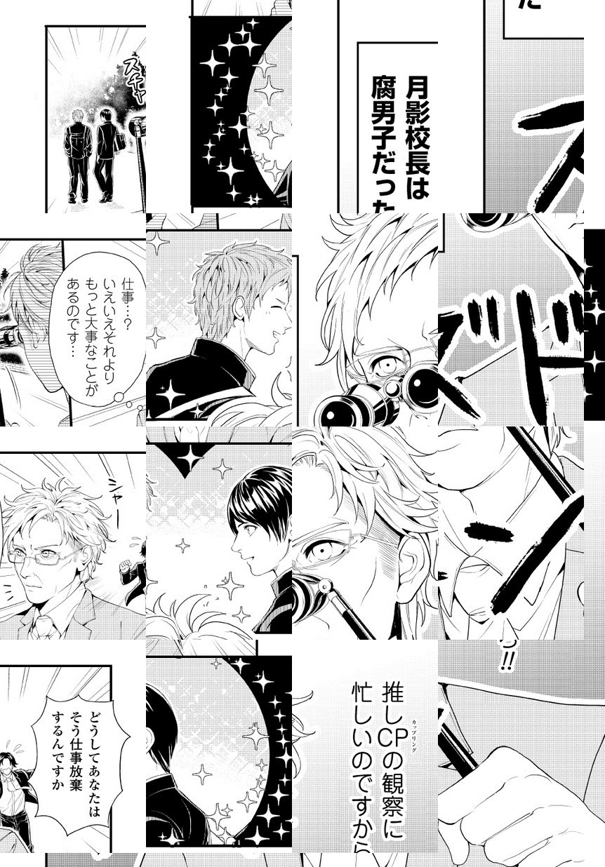 葉流学園高等学校男子部の校長・月影秀治は、腐男子だった…!そんな月影校長は、今日も生徒の成長を見届けるという名目で仕事を放棄し、スケボーに乗って推しCP(カップリング)の観察に勤しむ!第8回若草賞・佳作受賞のBL学園4コマコメディを特別掲載!!