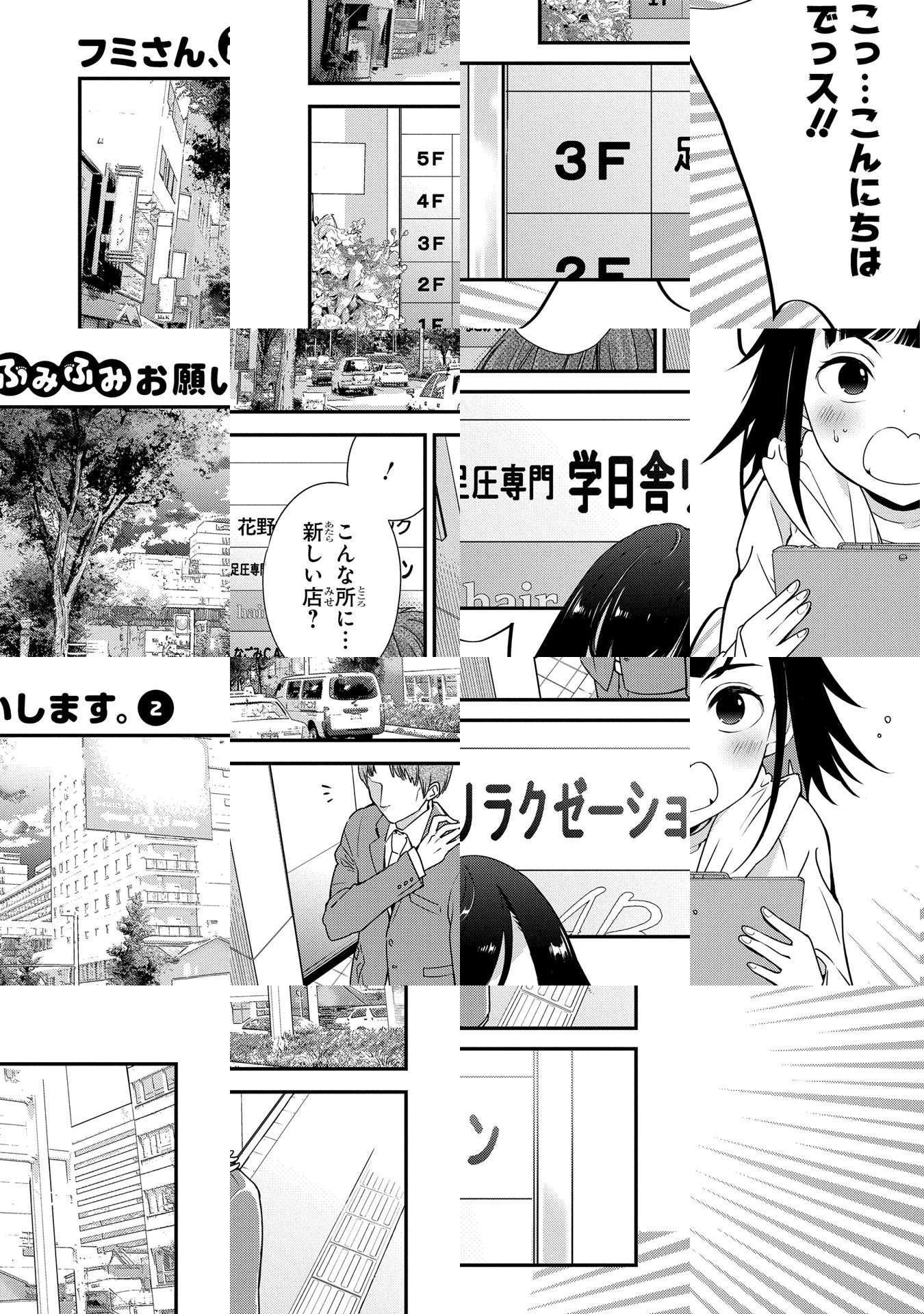学日舎フミさんは足圧マッサージ専門のセラピスト。今日も疲れ顔のお客さんを踏み踏みするうちに、自分も興奮してしまい……。