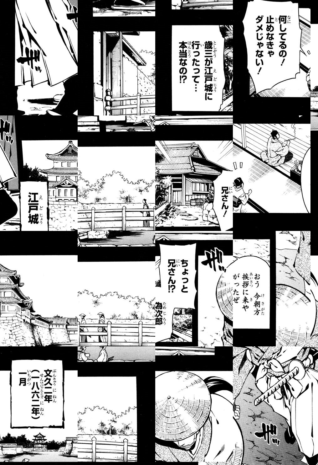 【第1火曜日更新】戊辰戦争の勃発に伴い、新撰組は京、江戸、そして蝦夷へと転戦を重ねる。その最終地ともいえる蝦夷・五稜郭での戦いが、今始まろうとしていた…。戦いの最中、市村鉄之助に付き従うように命じられた田村銀之助。鉄之助の少年期に瓜二つの少年・銀之助は、市村鉄之助から壮絶なる戦いの記憶を聞かされることとなる…。