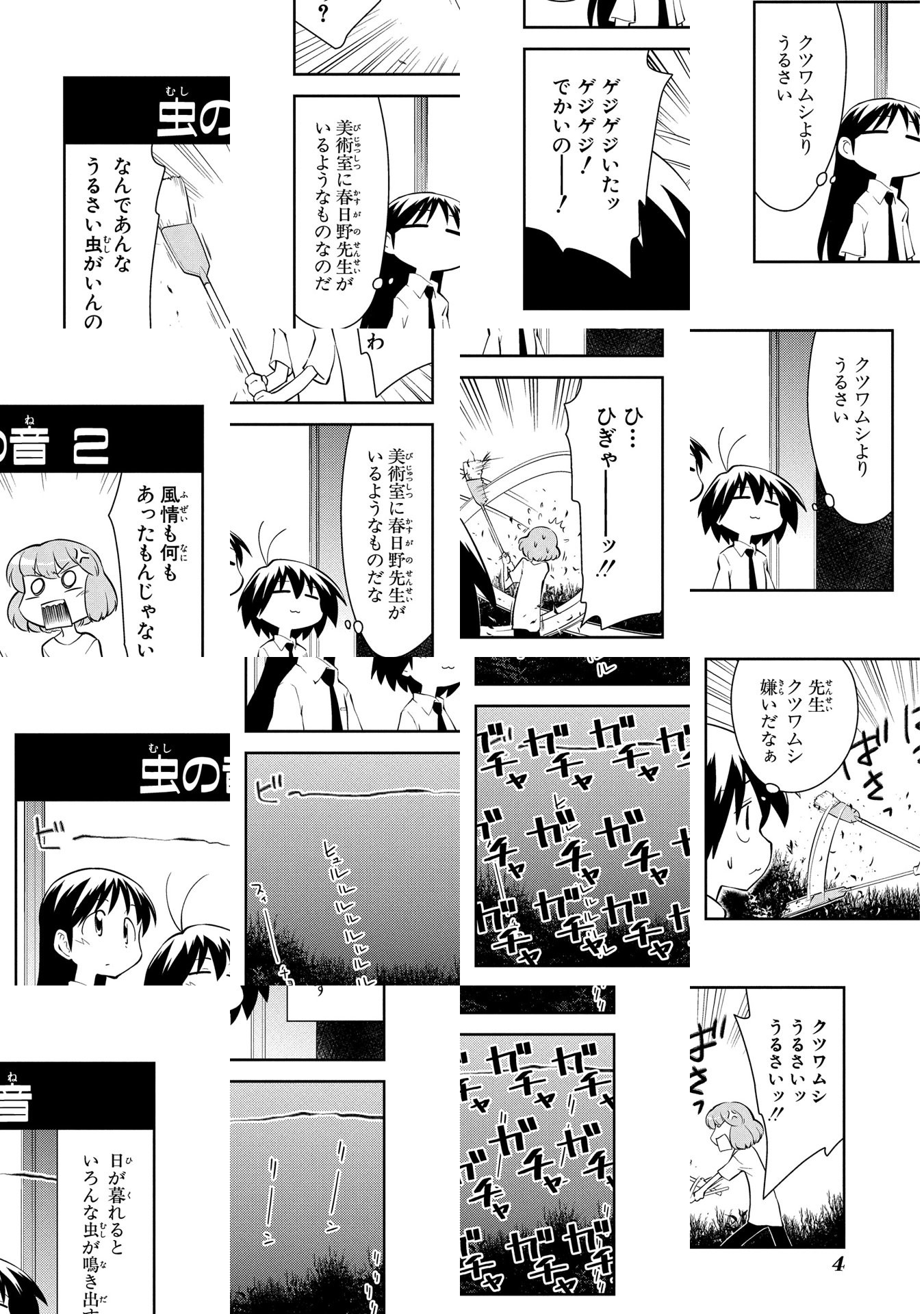 高校に入学し、なりゆきで美術部に入部した、梶原空。彼女をはじめとする個性豊かな部員と猫たち(ついでに虫たち)が、どこにでもあるような日常生活を、いつまでも、のんびりと過ごしていく。小さな発見のつまった、まったり4コマです。