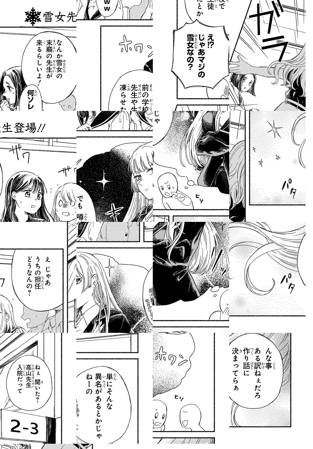 担任の先生が入院したことにより臨時でやってきた先生はなぜか雪女!? しかもこの先生、緊張すると溶けて子供の姿になるし、冷やすと大人の姿になるヘンテコ体質の雪女…。そしてなによりもポンコツだし…大丈夫かこの先生?ポンコツあがり症な雪女先生が送るヘンテコ可愛い特別授業読切コメディ!!