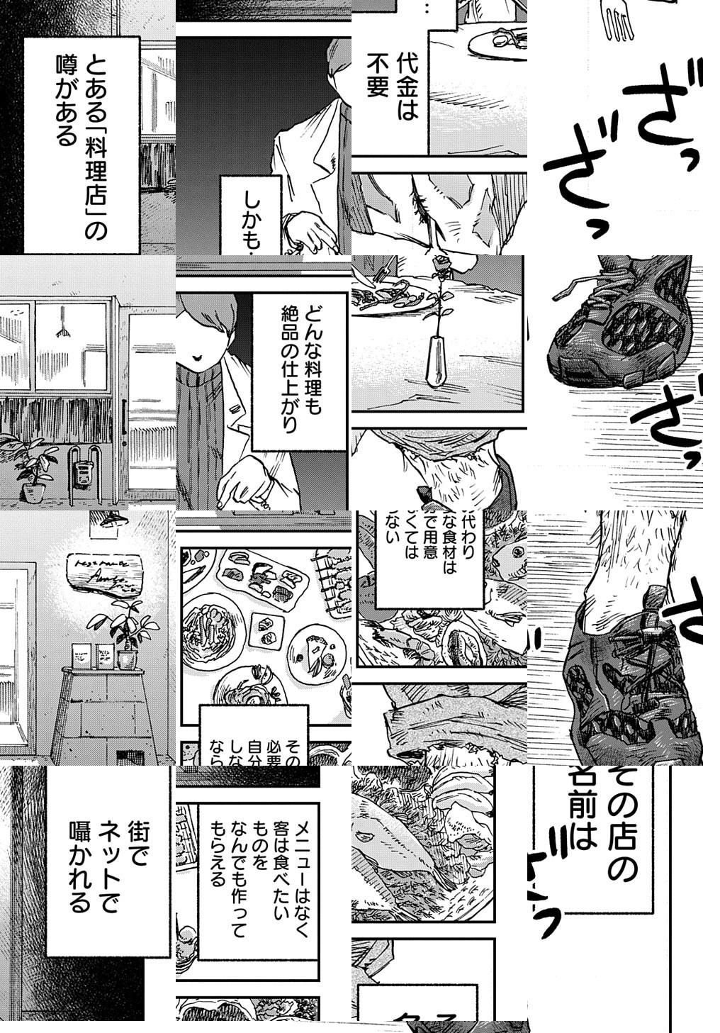 店を持たず、ホームレスが客の持ち込み食材で飯を提供する「路上食堂」。ひょうひょうとした店主・玉田のもとには、今日も心の空腹を抱えた客が心と腹を満たしに訪れる……。心の「貧困」をホームレスが料理で解消する、Z級グルメドラマ開店!!