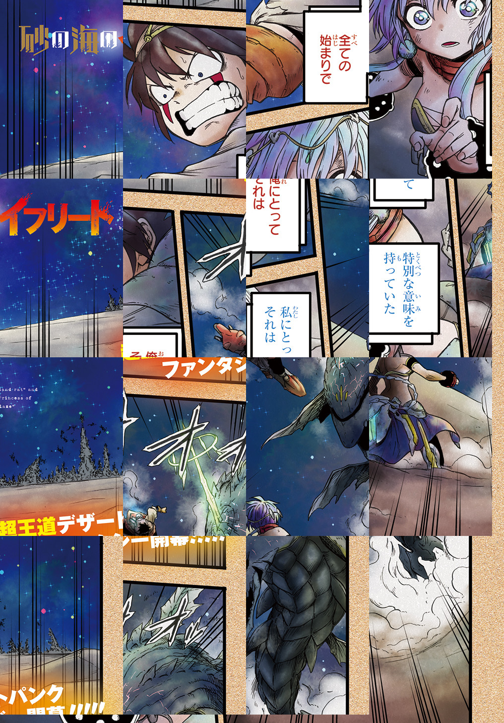 世界が砂の海に覆われて千年。かつての科学文明は滅び、生き残った人類は水を奪う巨大な異形《水喰》との過酷な生存競争を繰り広げていた。辺境の海域に住む少年・ノアはある日水喰に追われる女性を助けるのだが、彼女はその身に触れるものを焼くほどの力を持つ《ヒノカミ》の化身だった…!? 砂の海の果てにある楽園を求め旅する少年と少女。超王道デザートパンクファンタジー!!!