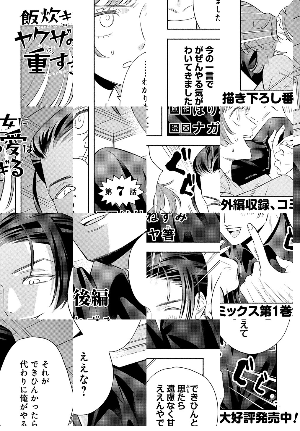 【毎月第3火曜日更新】限界社畜OLの新藤七緒はひょんなことからお隣さんに料理をふるまうことに。ところが、そこはヤクザ達のたまり場だった!七緒はヤクザ達に料理の味をいたく気に入られ、なつかれてしまう。そんなところをヤクザの組長、風間蓮に目撃されたうえ見初められて――!? こんな愛情、重すぎる!「小説家になろう」の女性向けサイト「ムーンライトノベルズ」発、執着渦巻く狂愛ラブロマンス。