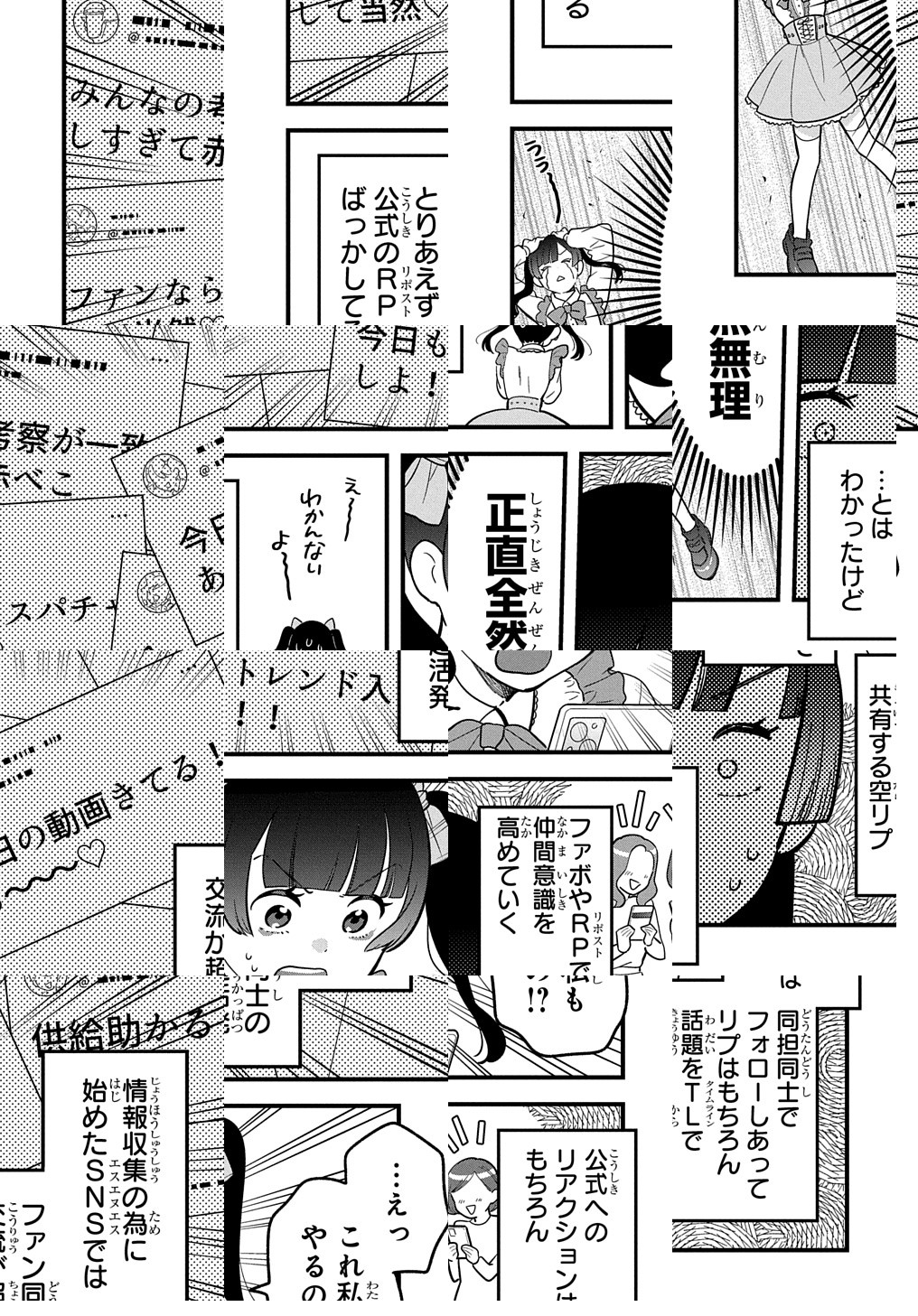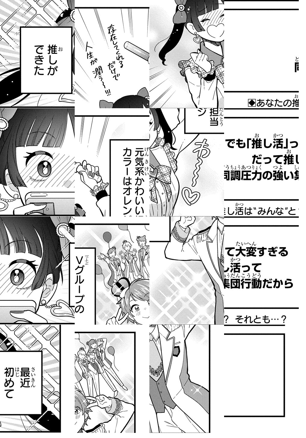10Pの短編マンガがパッと楽しめるコーナー、作家の個性とアイディアが迸るショートショート部門!推しが存在してくれるだけで人生が潤う!…はずなのに。同調圧力強めの推し活についていけない少女は、今日も一人推し活現場に赴き……。