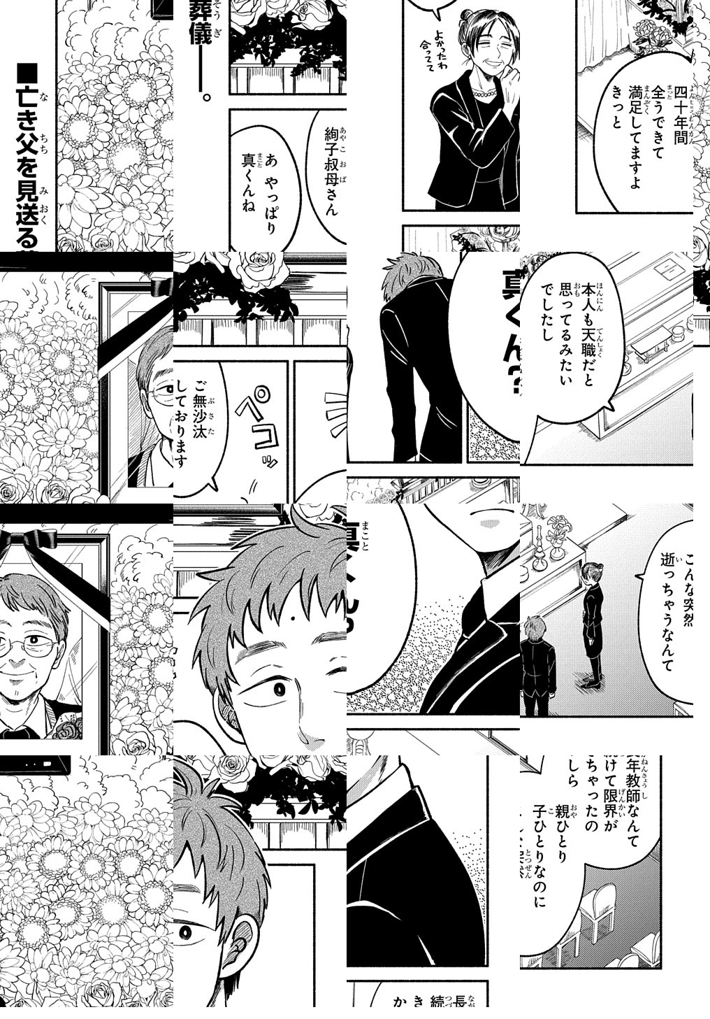 10Pの短編マンガがパッと楽しめるコーナー、作家の個性とアイディアが迸るショートショート部門!尊敬される教師だった父親の葬儀。訪れるのは意外な弔問客ばかり!? さらに葬儀後に暴かれる秘密が――!?