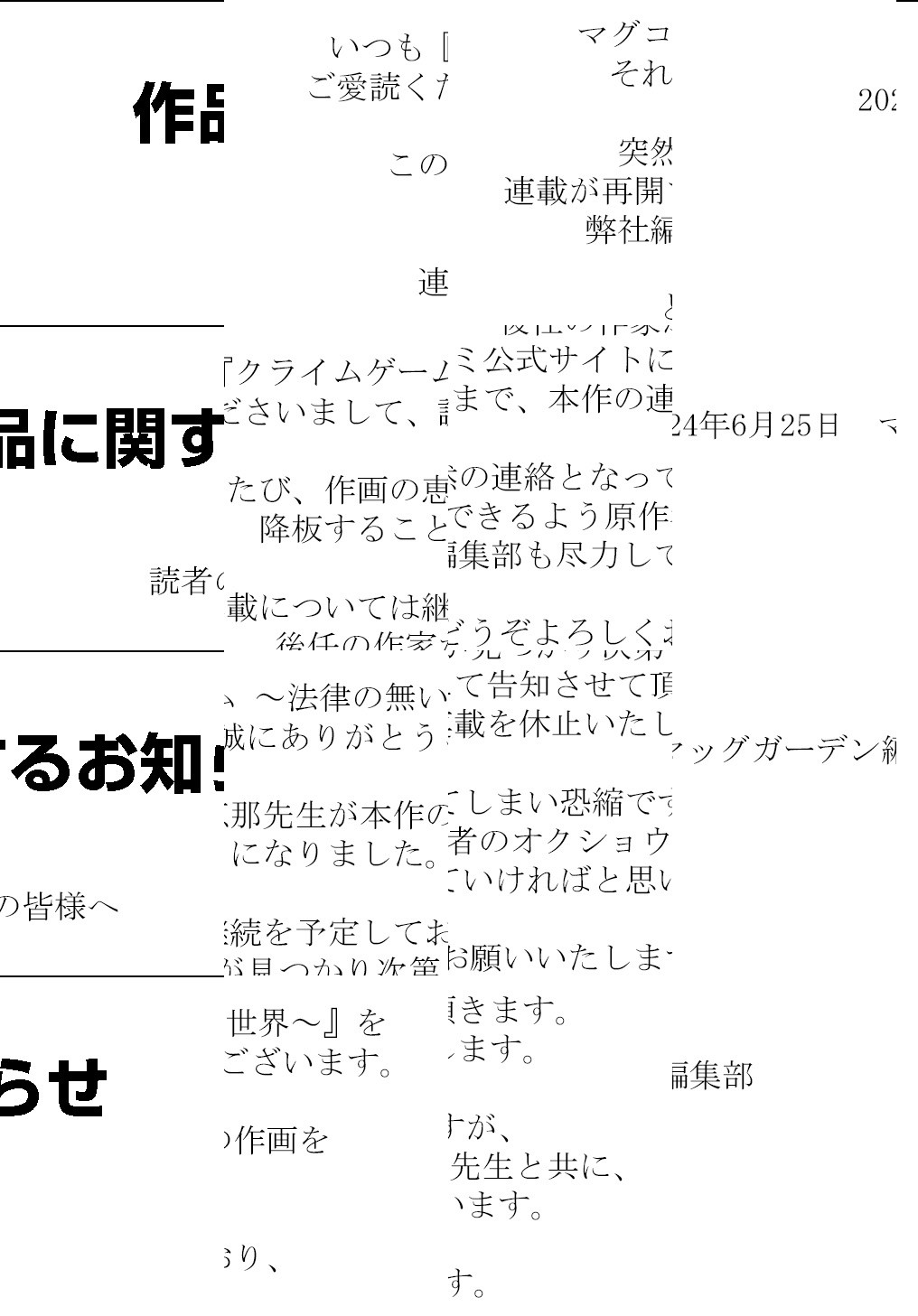 どこにでもいる高校生・天御ヱ焔は、気付くと荒廃した渋谷の街にいた。そのまま「アンノウン」と自称する謎の人物にこの世界ではどんな犯罪を犯してもいいと告げられ、罪の重さを競うデスゲームに強制参加させられることに…!『リアルアカウント』の原作者・オクショウと『死印』漫画担当・恵那がタッグを組み描く犯罪デスゲーム、ここに開幕!