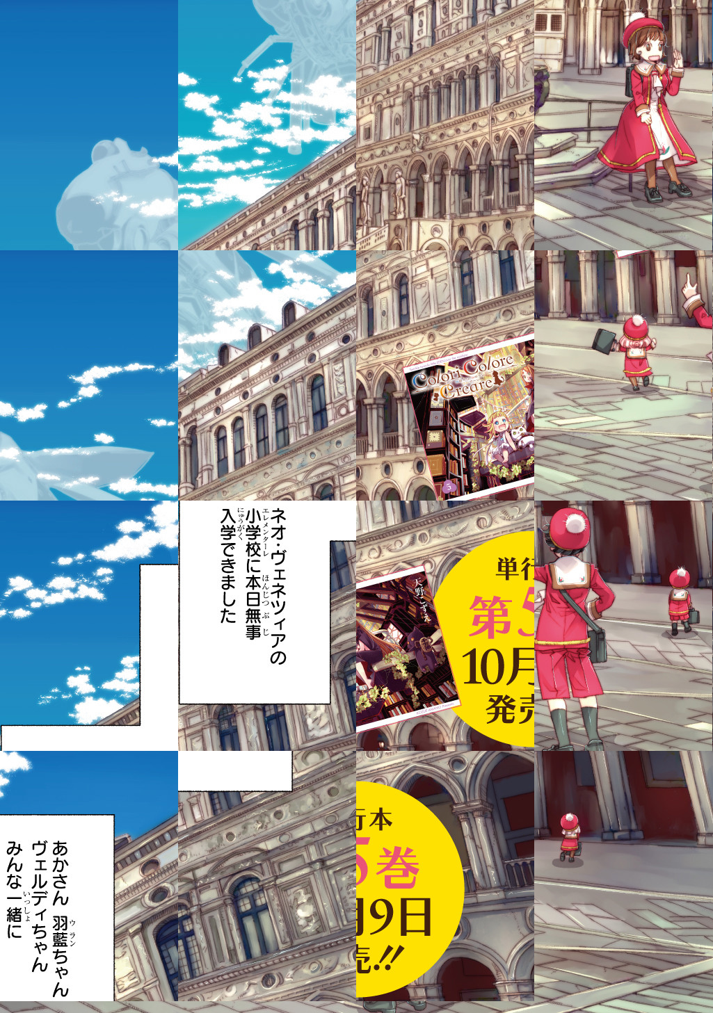 【毎月第2火曜日更新】とある島にあるのれんに守られたおのぼり町。趣ある風車小屋で喫茶店を経営する祖父と二人暮らしをしている天真爛漫な少女あか。巨大な黒猫と出逢うことから物語は幕を開け…日常に散りばめられた色とりどりの素敵を紡ぎ、未来の色を創造していくハートフルきっずストーリー、元気いっぱいに始まります。