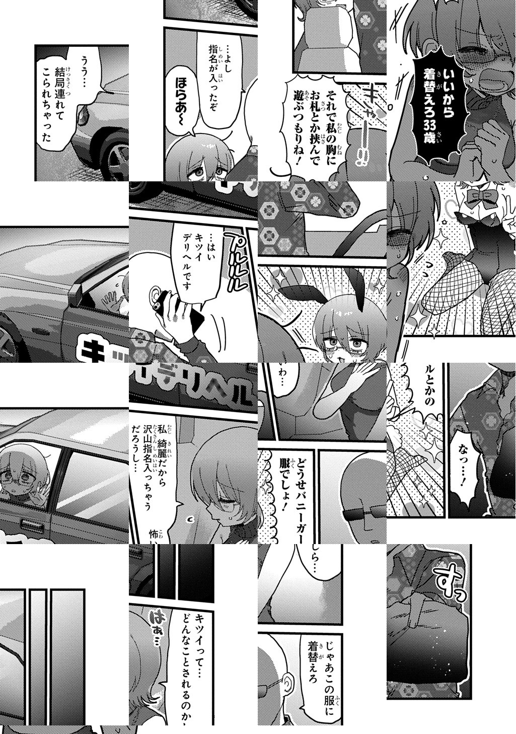 10Pの短編マンガがパッと楽しめるコーナー、作家の個性とアイディアが迸るショートショート部門! 一千万円の借金を抱えたクズ女・出理地獄子。返済のため働かされることになったのは、客の特殊な需要に応える「キツイデリヘル」だった――!!
