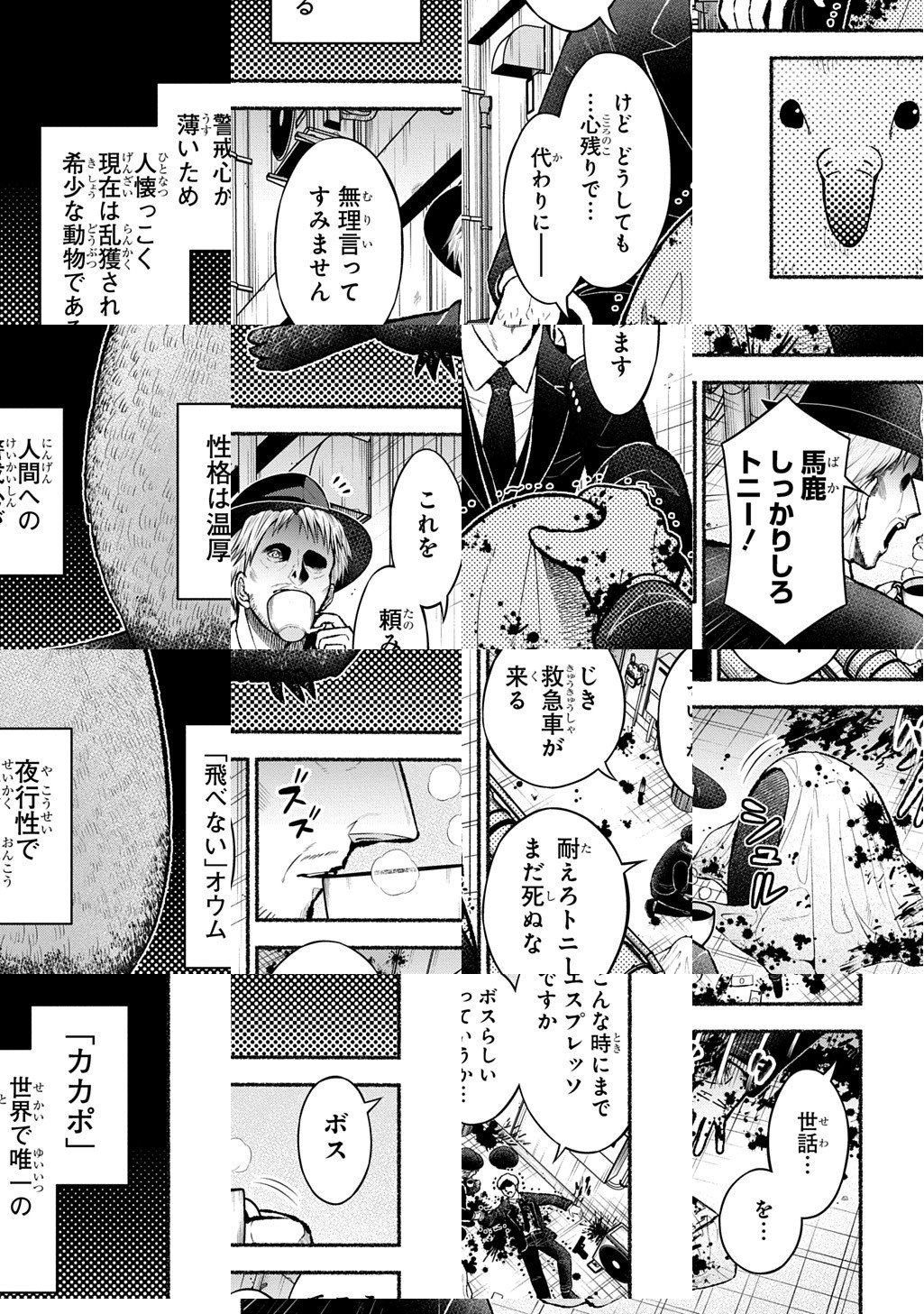 ひと仕事終えたマフィアのボスが拾ったのは、世界で唯一の飛べないオウム「カカポ」!? ファニーで奇妙な生き物と、それに魅了されたボス&お世話係の女部下でおくるカカポラブ・コメディ読切!