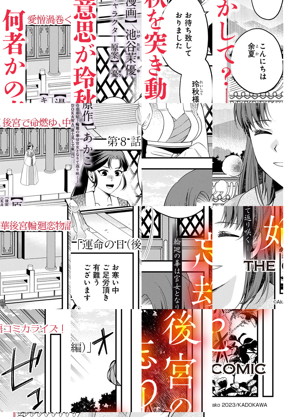 【毎月第4火曜日更新】古代中国・汪の国、第三皇子・紫釉と紹将軍が主導した皇帝徐欣討伐の反乱の最中、非業の死を遂げた末端の皇帝妃・玲秋と、幼き公主・珠玉。だが何故か過去の世界で目覚めた玲秋は、運命を変え珠玉の命を救うべく奔走するが…?陰謀と愛憎が渦巻く中華後宮輪廻恋物語!(C)Akako 2023/KADOKAWA