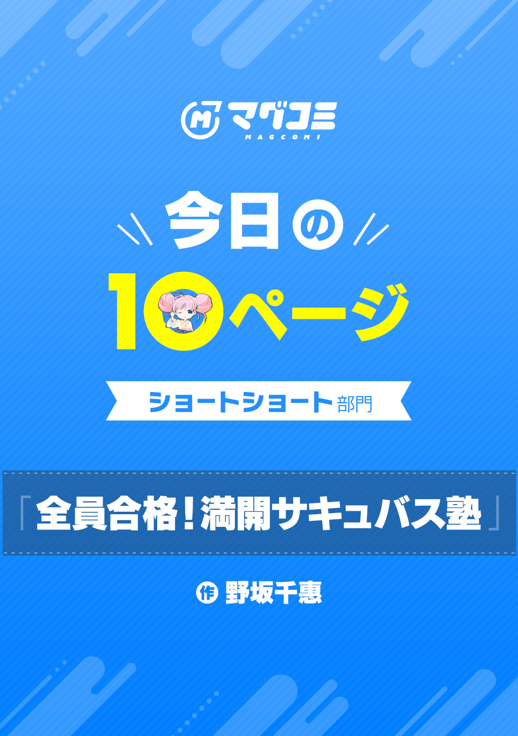 10Pの短編マンガがパッと楽しめるコーナー、作家の個性とアイディアが迸るショートショート部門! 成績が伸び悩む男子高校生の伊藤が勧められた塾は、生徒も教師も全員サキュバスのクラスだった!? スキンシップ過剰な美少女たちと下ネタトークに囲まれて、伊藤は勉強に集中できるのか……!?