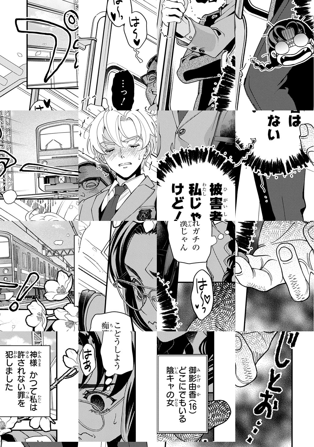 10Pの短編マンガがパッと楽しめるコーナー、作家の個性とアイディアが迸るショートショート部門! 満員電車でイケメンが痴漢されているのを目撃した主人公・御影由香は、昔彼をストーキングしていた過去があった。同じ犯罪者のため、自分には彼を救う権利がないと思い、誰か助けてあげてと周囲を見渡すが――…。