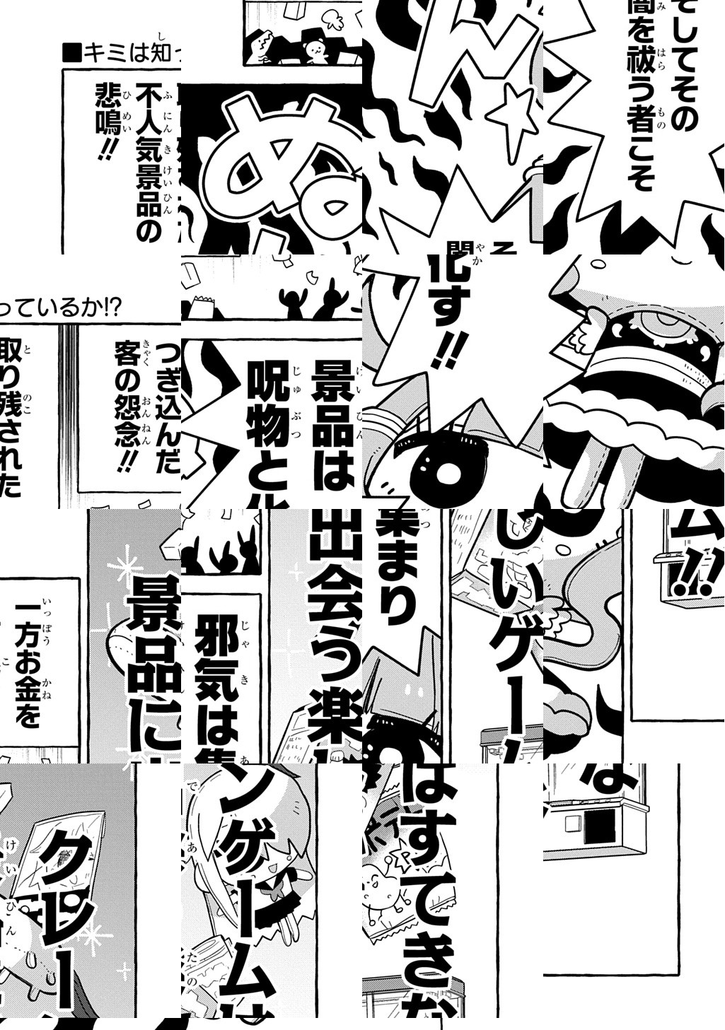 10Pの短編マンガがパッと楽しめるコーナー、作家の個性とアイディアが迸るショートショート部門!クレーンゲームで誰にも取られなかった景品に溜まる怨念――そんな景品を救うのがクレーンゲーム祓魔師!今日も寂れたゲーセンに巣くうぬいぐるみに救いの手(自腹)を差し伸べる!