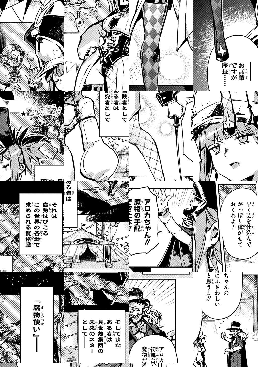 10Pの短編マンガがパッと楽しめるコーナー、作家の個性とアイディアが迸るショートショート部門!サーカスの新人魔物使いにあてがわれた「魔物」は……どう見ても……人間!? もしヒトだったら一大事、魔物だったらどう芸を仕込めば!? 悩める魔物使いのコミュニケーションコメディ!