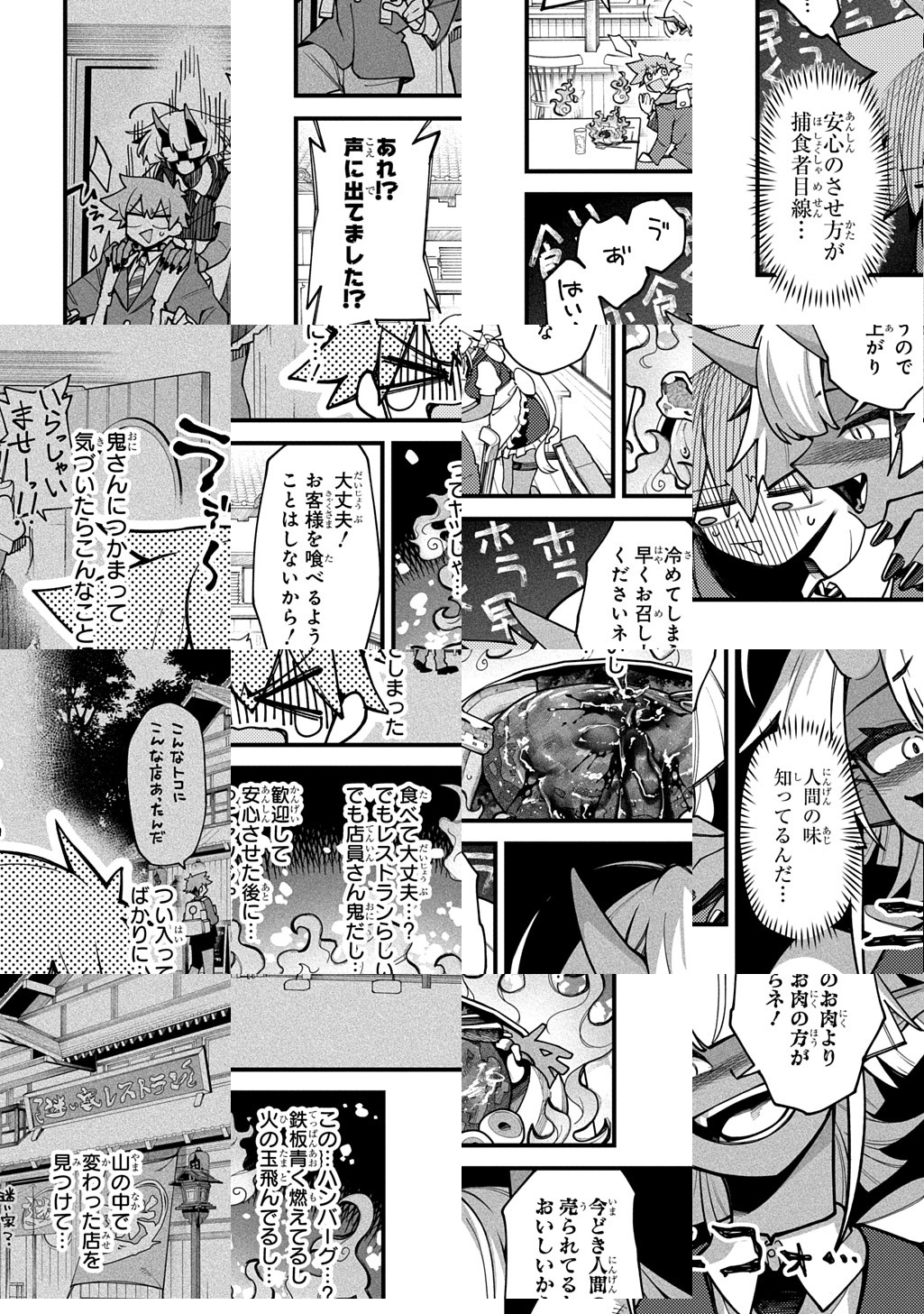 10Pの短編マンガがパッと楽しめるコーナー、作家の個性とアイディアが迸るショートショート部門!山奥の不思議なレストランを訪れた少年。店主であり料理人でもある鬼のお姉さんに、愛情過剰なおもてなしを受けることに……?
