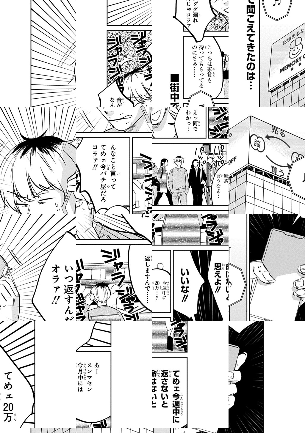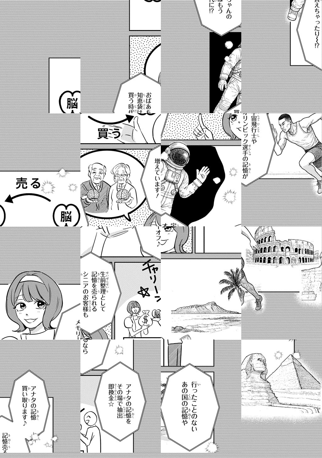 10Pの短編マンガがパッと楽しめるコーナー、作家の個性とアイディアが迸るショートショート部門!ギャンブル三昧で借金に追われる男が訪れたのは、記憶を買い取ってくれる「メモリーオフ」というお店で……。