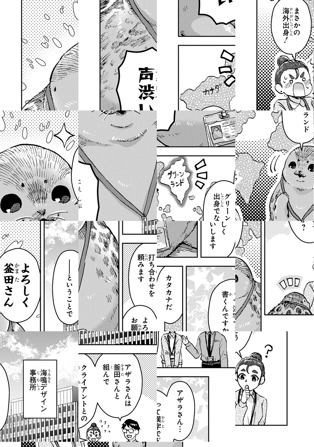 10Pの短編マンガがパッと楽しめるコーナー、作家の個性とアイディアが迸るショートショート部門!ここは海鳴デザイン事務所。ある日、凄腕のデザイナーが入社してくることになるのだが、どう見てもアザラシで――!?