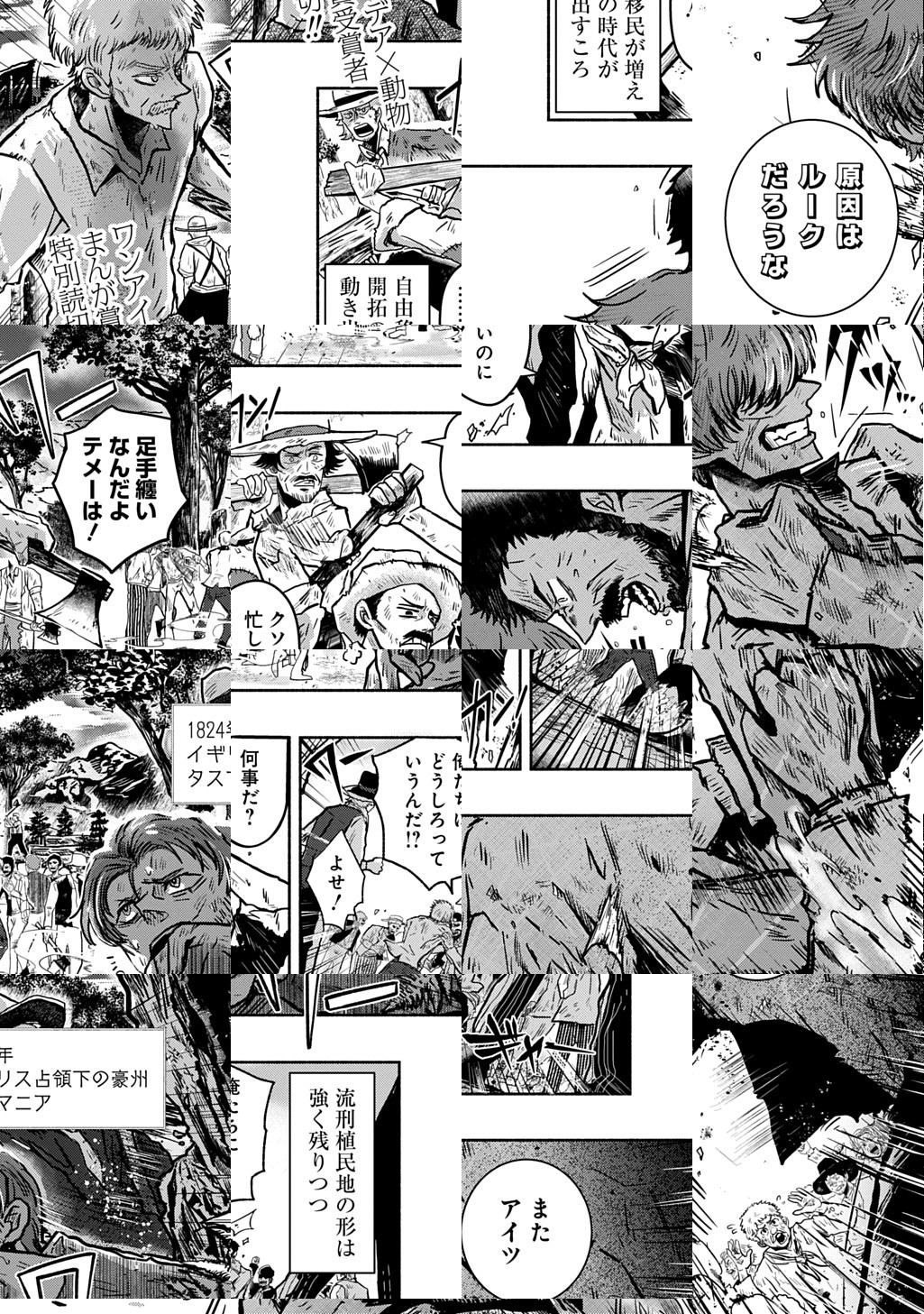 イギリス植民地時代の豪州タスマニア。耳と口が不自由で社会から疎外されていた青年・ルーク。そんな彼に手を差し伸べたのは、同じような者と集まりアウトローとして生きる自由奔放な男・トムで…。ワンアイデア×動物まんが賞受賞者、特別読切!