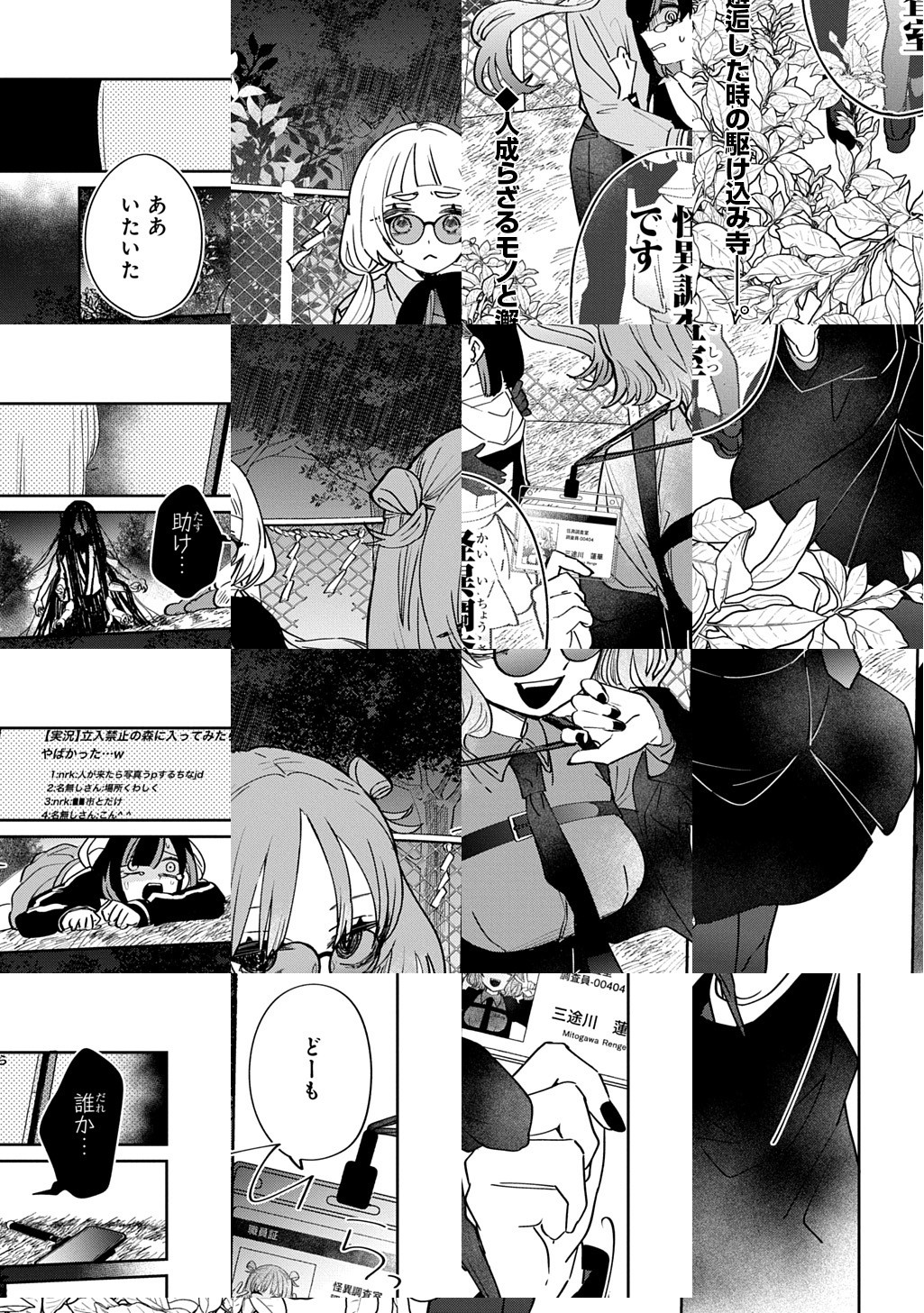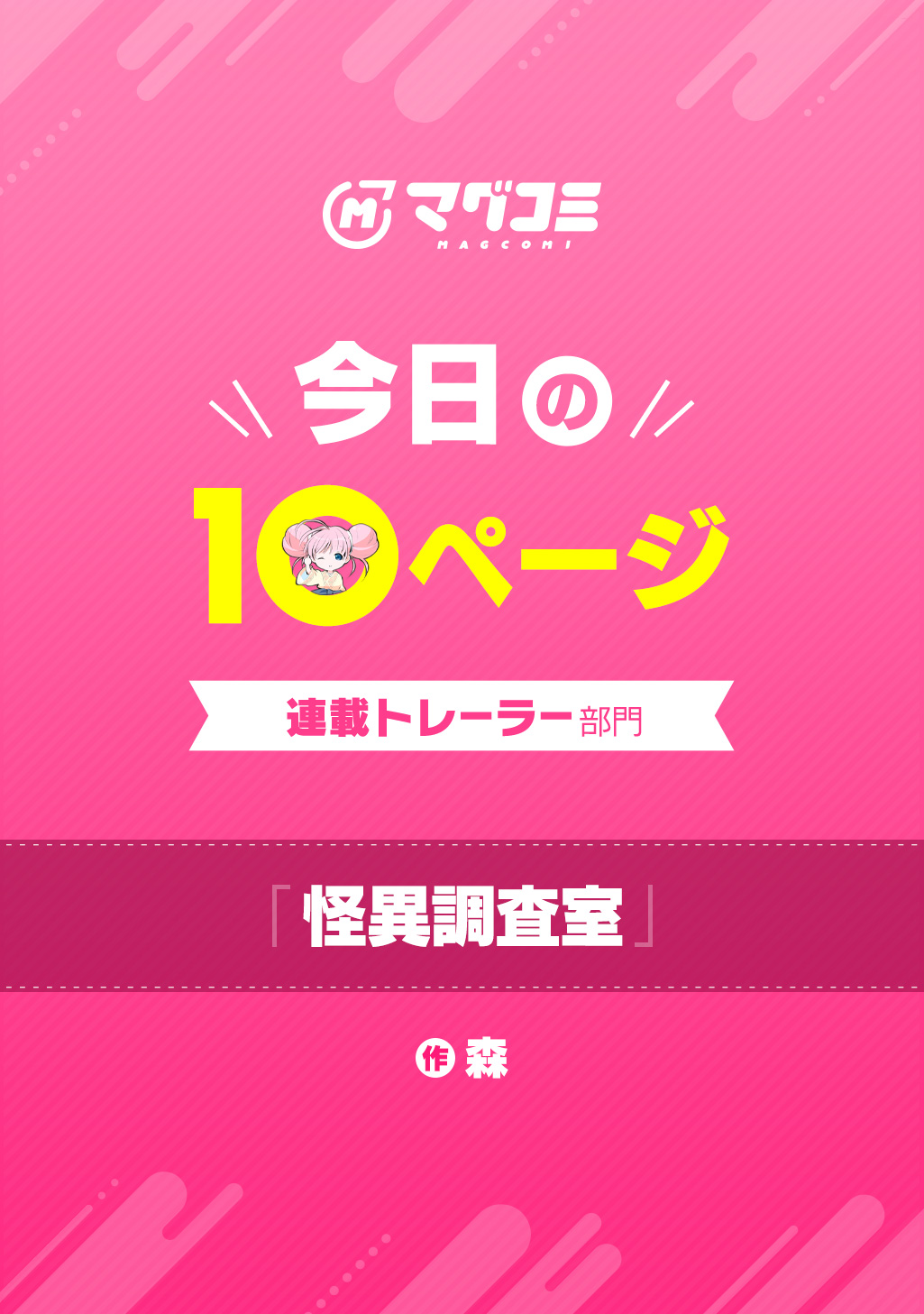 10Pの短編マンガがパッと楽しめるコーナー、「こんな連載があったらいいな!」の連載トレーラー部門!ようこそ、現代に蔓延る怪異を調査する「怪異調査室」へ。怪異にお困りならば私達プロの調査員が、すぐさま解決へと導いて差し上げましょう。