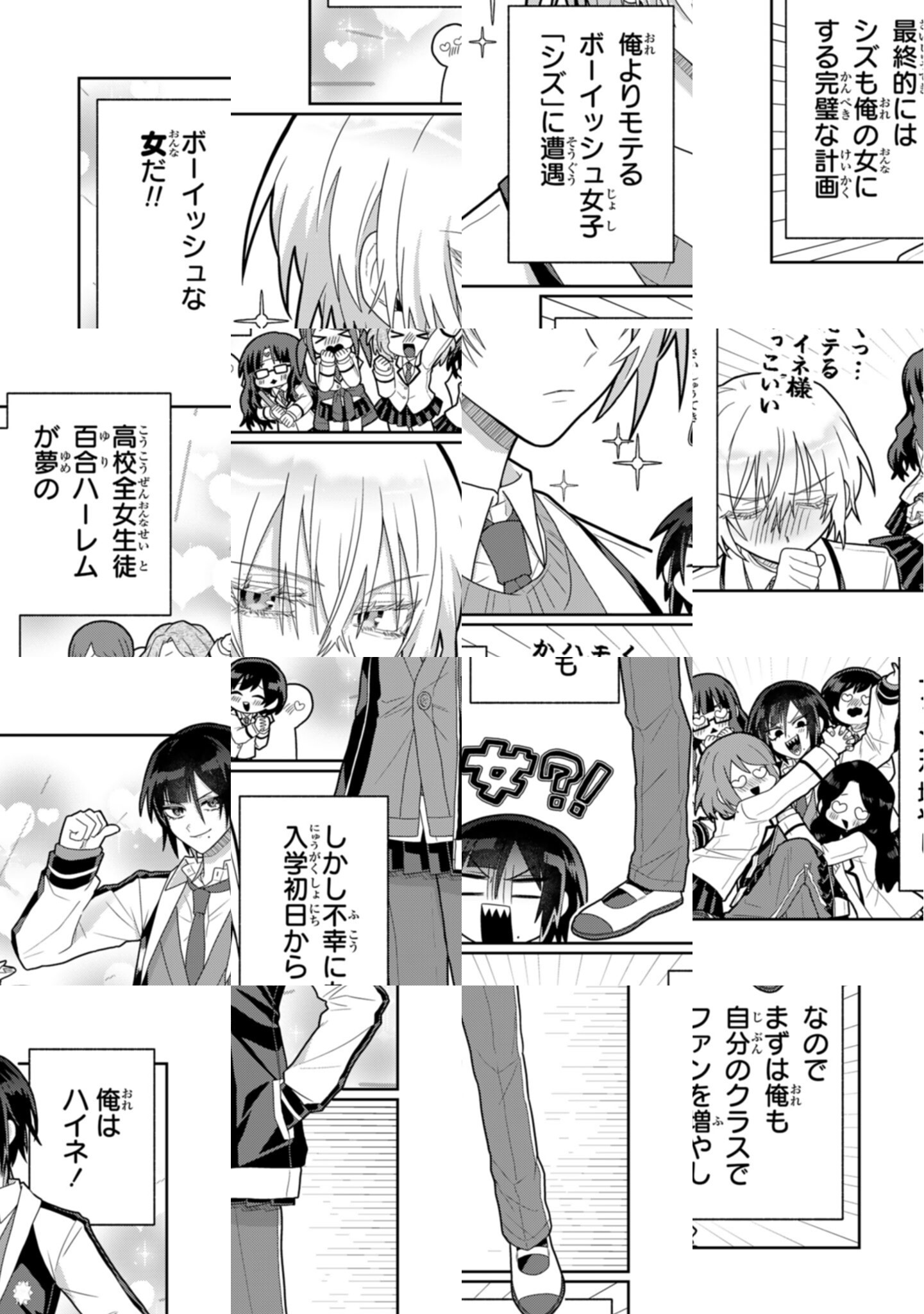 【毎月第1・3火曜日更新】イケメン系ボーイッシュ女子高生・羽衣音。その野望は自分だけの百合ハーレムを築くこと。入学初日から女子を助けて調子に乗る羽衣音だが、その前に女子の恋心を無自覚に搔っ攫う、王子様系ボーイッシュ女子高生の雫佳が立ちはだかる!打倒雫佳、目指せ自分だけの高校百合ハーレム!タイプの違うボーイッシュJKがぶつかりあう、仁義なき沼らせ合いケンカップル百合コメディ!!
