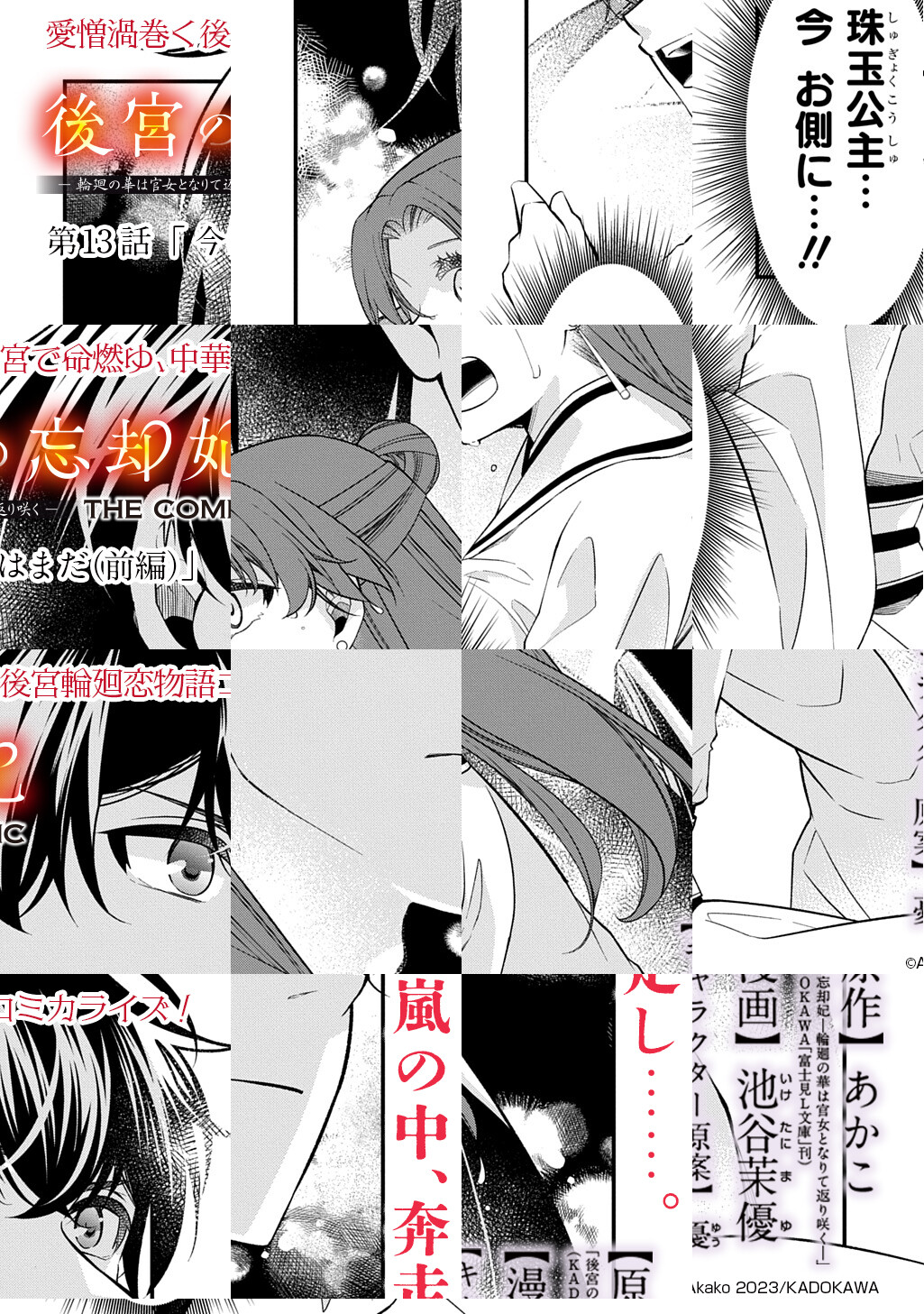 【毎月第4火曜日更新】古代中国・汪の国、第三皇子・紫釉と紹将軍が主導した皇帝徐欣討伐の反乱の最中、非業の死を遂げた末端の皇帝妃・玲秋と、幼き公主・珠玉。だが何故か過去の世界で目覚めた玲秋は、運命を変え珠玉の命を救うべく奔走するが…?陰謀と愛憎が渦巻く中華後宮輪廻恋物語!(C)Akako 2023/KADOKAWA