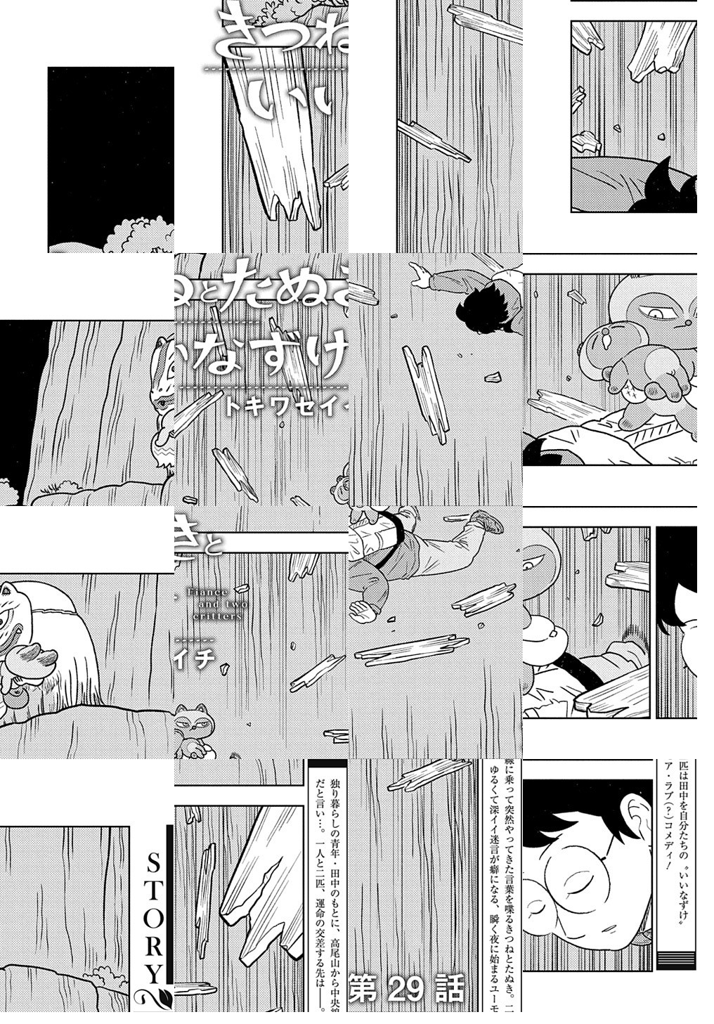 独り暮らしの青年のもとに、高尾山から中央線の乗って突然やってきた言葉を喋るきつねとたぬき。二匹は青年を自分たちの“いいなずけ”だと言い…。瞬く夜に始まるユーモア・ラブ(?)コメディ!