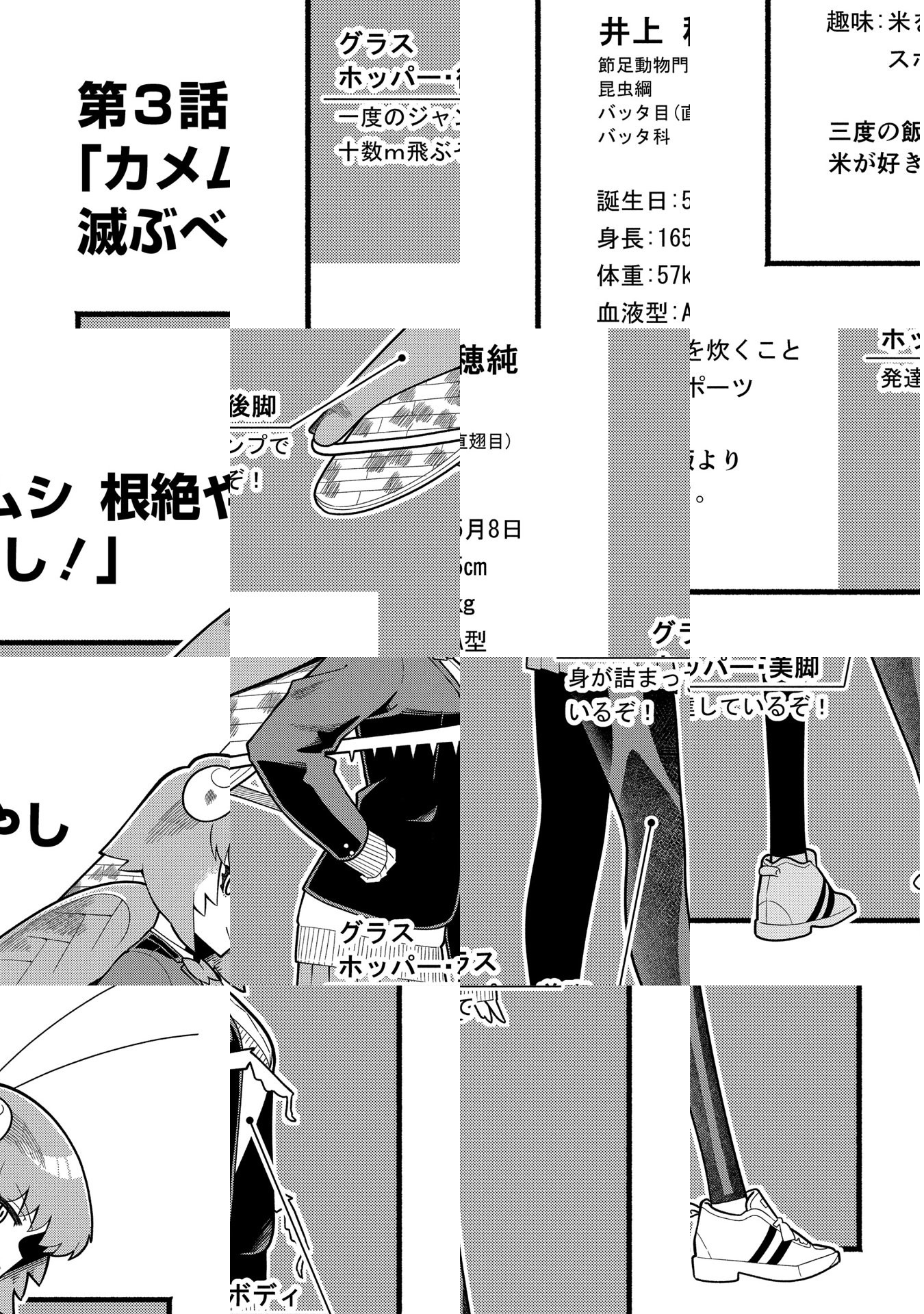 生徒思いだけど虫がと~っても苦手な高校教師・中村ちせは、『昆虫人(むしんちゅ)』の新入生に苦手意識を持ってしまい悩む日々…。そんなある日の放課後、カマキリの昆虫人・秋山からある相談を受ける…それはなんと、「昆虫料理研究部」創部の手伝いで!?? 読切大反響につき、待望の連載化! 虫が苦手な先生×インセクトJKたちで送る前代未聞の『同族』料理部コメディ開幕!!!