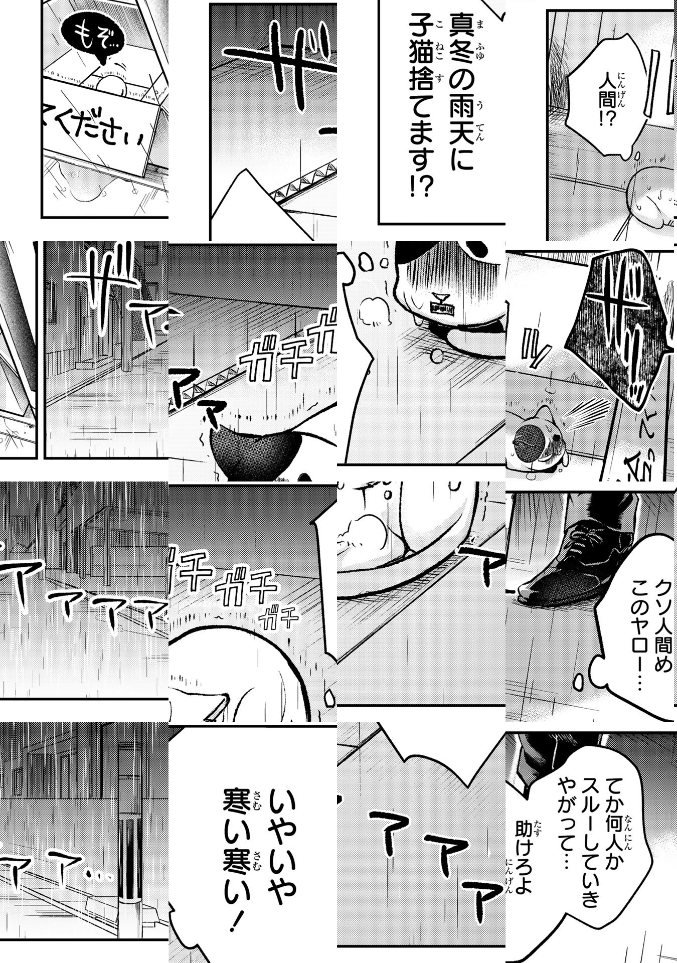 雨の中、捨て猫のサブは一人の人間に拾われる。助かったと思ったものの、しかしその人間はどこからどう見てもヤのつく自由業な顔つきだった!?