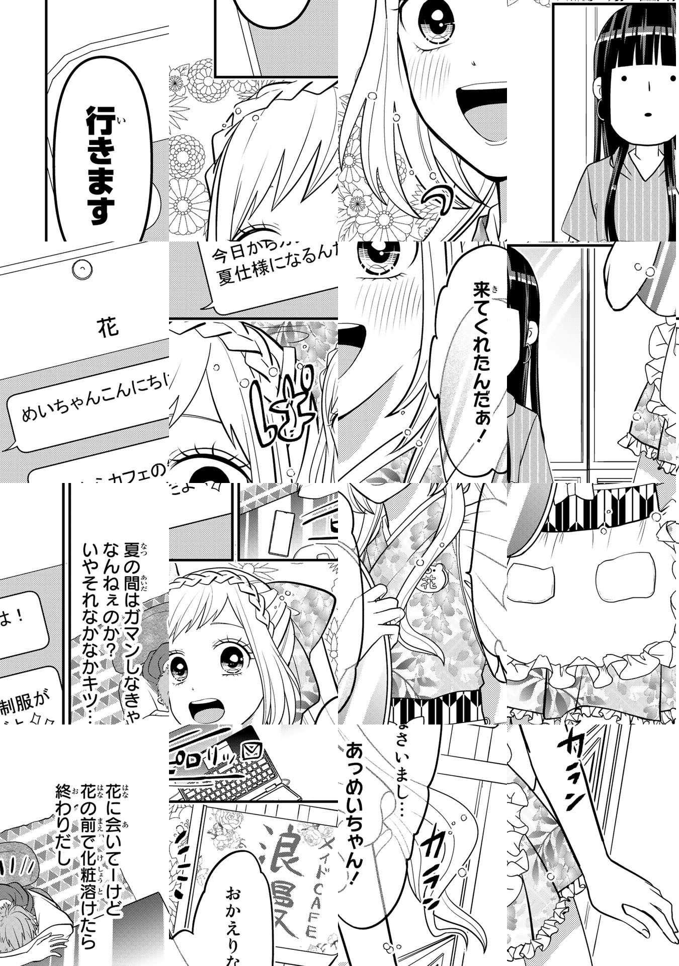 【毎月第1火曜日更新】和風メイド喫茶で働く可愛く朗らかな女の子・「花」と黒髪がきれいな凛とした美人・「めい」。二人はお互いに好きだと気づいていない両片想い。…しかし、二人には相手にバレてはいけない秘密が…。