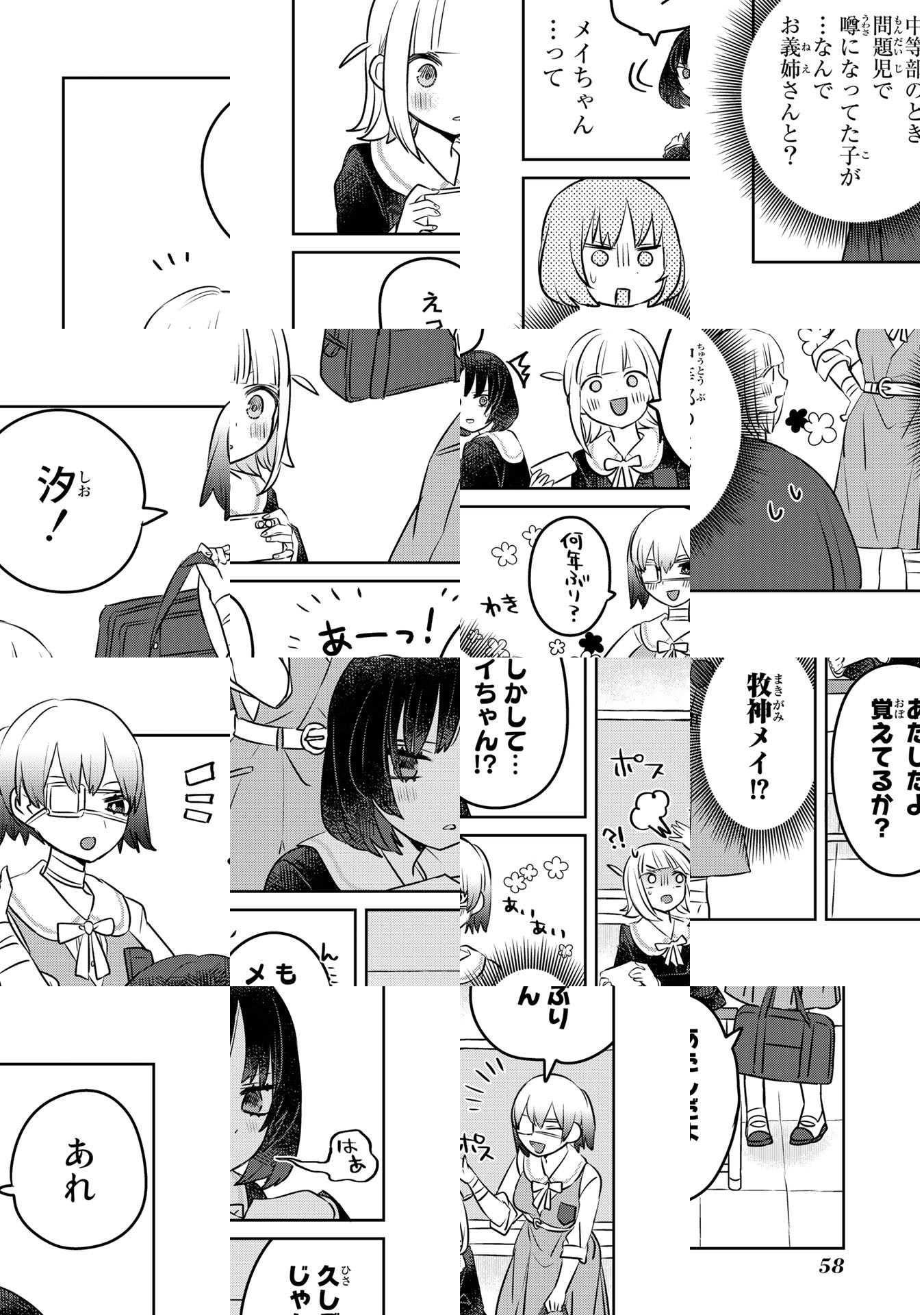 親の再婚で姉妹になった、汐とカフカ。同い年なのに誕生日が1日違いというだけで、義姉になった汐は、大人っぽくドライなカフカに姉の座を狙われていると思い込んでしまう。しかし本当は、義妹のカフカは汐のことが恋愛的な意味で大大大好き!ことごとく空振りすれ違う二人は、お互いの真の想いに気づくのか…!? なりたいのは姉妹?恋人?すれ違い義姉妹のガールズラブコメディ!